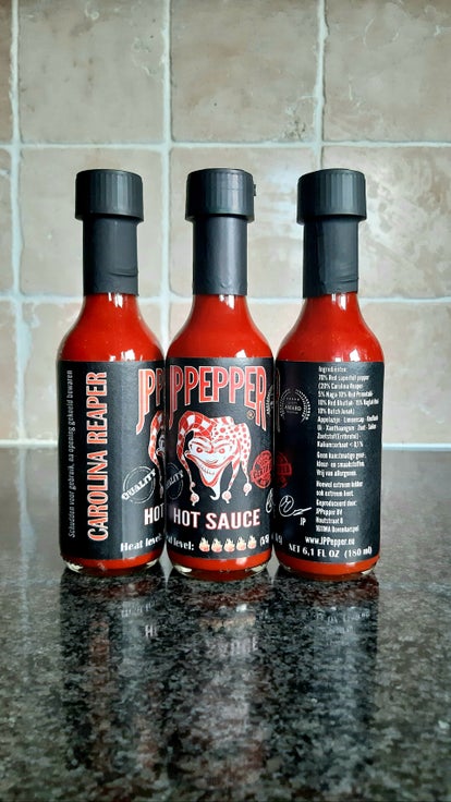 Vernieuwd recept! Inhoud 180 ml. De Carolina Reaper gefermenteerde hete saus is de heetste saus in het assortiment van JP Pepper. De hitte en smaak komen van hoogwaardige ingrediënten met een hoog percentage gefermenteerde Carolina Reapers. Deze nieuwe batch is gemaakt met verschillende "super-hots", waardoor deze saus meer als voorheen een 3D-burn heeft. Deze saus is perfect voor elk gerecht, vooral voor chili, pasta, roerbakgerechten, kippenvleugels of marinades.